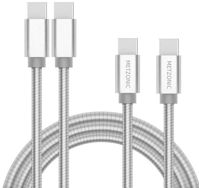- METZONIC Type C to Type C Cables is wrapped by a unique metal spiral sleeve as a protective cover, wound tightly around the cord. Offers superior strength and flexibility to the cable.