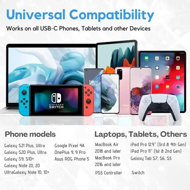 100 % compatible with phones, tablets, and laptops that support USB C chargers.