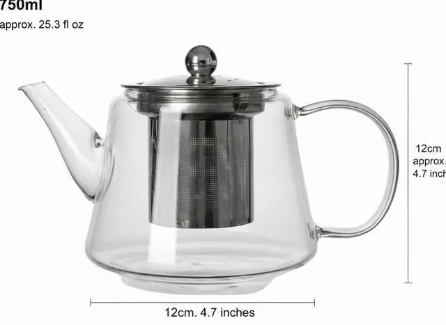 Enjoy every cup of tea with the TEEM 750ml Borosilicate Glass Teapotdesigned for elegance, function, and flavor. Made from heat-resistant, crystal-clear borosilicate glass, this teapot is perfect for brewing loose leaf, herbal, or blooming teas. The included stainless steel infuser is food-grade, finely meshed, and easily removable, ensuring smooth, flavorful infusions with no floating leaves or particles. With a generous 750ml capacity, its ideal for multiple servings, whether you're sharing tea or sipping throughout the day. Compatible with stovetops, microwaves (infuser removed), and dishwashers, the TEEM teapot can handle rapid temperature changes from -20°C to 130°C. The ergonomic anti-scald handle provides a safe, comfortable grip, while the precision spout ensures easy, drip-free pouring. Its sleek transparent design lets you enjoy the visual beauty of brewing tea, making every pour an experience. Comes in a premium gift boxbeautifully packaged and ready to give, making it a perfect present for tea lovers, hosts, or any special occasion. Elegant, durable, and easy to clean, this teapot brings your tea time to the next level.
