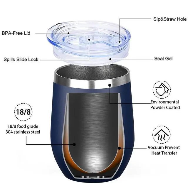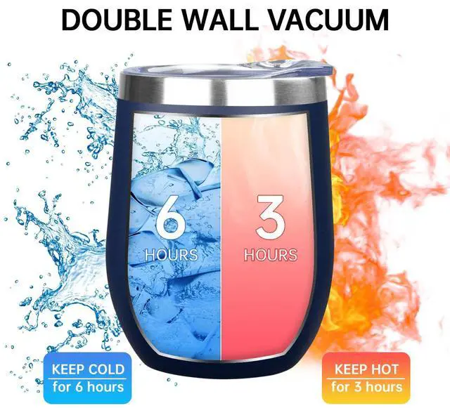 DOUBLE-WALL INSULATION TECHNOLOGY - The Stainless Steel wine tumblers are double wall and vacuum insulated. The Double-Wall Vacuum insulated thermal technology provide a good ability of insulation, which is good for keeping your drinks warm or cold for a long time and protects your hands against the temperature of the drinkings inside the tumbler cup, so you can use the insulated wine tumbler in any season.
