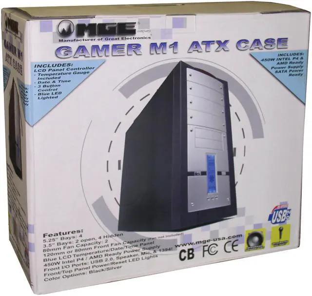 MGE CAG-M1-BK Black/Silver SGCC ATX Mid Tower Computer Case 450W Power Supply