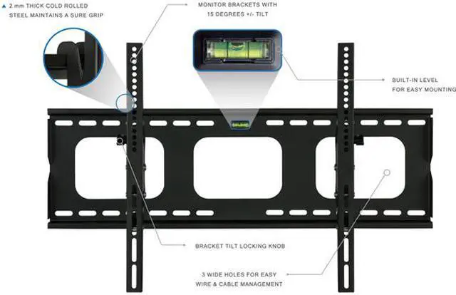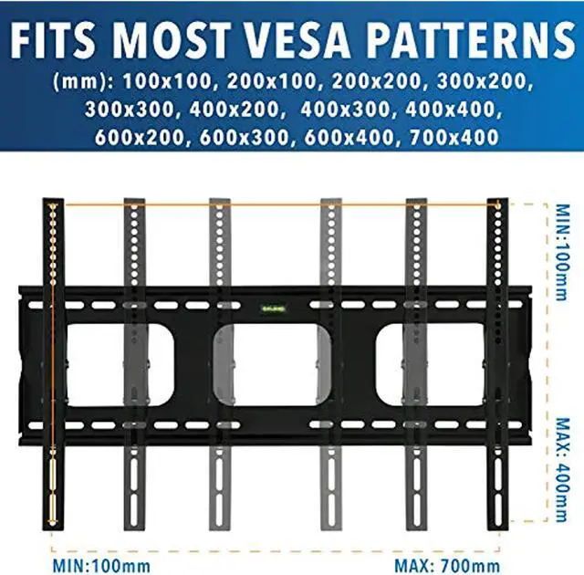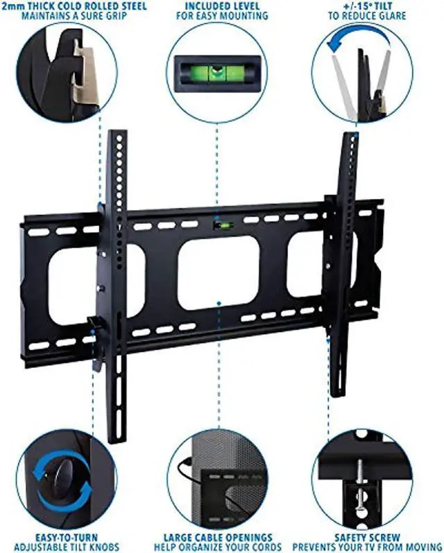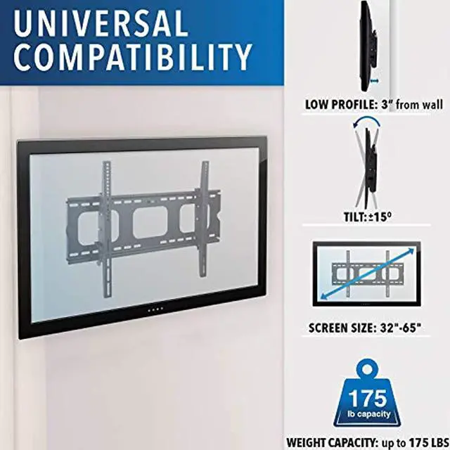 Mount-It! safely secures your precious flat screen television to any wall. This sturdy TV mount has sleek design that sits a few inches away from the wall, with two adjustable brackets that tilt up to 15 degrees. Just check the bolt hole pattern of the TV to ensure the bolts are located at a maximum of 24 inches wide and 16 inches high. This VESA pattern covers most larger TVs up to some 65 or even 70 inches in screen size.