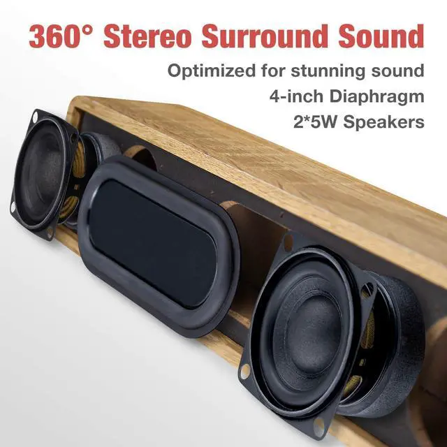 Crafted with an MDF wooden casing, our soundbar delivers warm, authentic audio. Dual 5W speakers ensure crystal-clear sound, bringing your music, movies, games to life with enhanced depth and clarity.