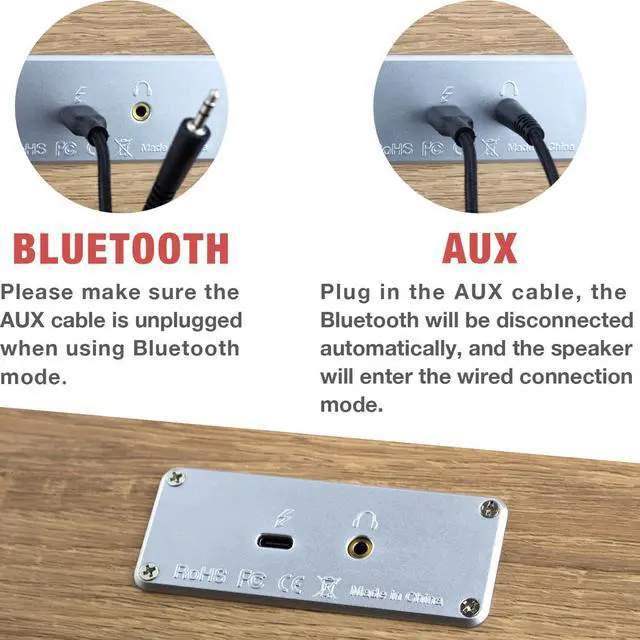 Switching between Bluetooth and AUX modes is effortless with our speakers. When only the USB power cable is connected, they operate in Bluetooth mode. Connecting the AUX audio cable automatically switches to AUX wired mode. Note: To use Bluetooth mode, please ensure the AUX cable is unplugged.
