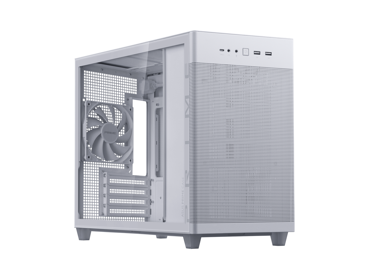 ASUS Prime AP201 White MicroATX Tempered Glass Edition Supports Graphics Cards up to 338mm, 360mm Coolers, & Standard ATX PSUs, Tool-Free Side Panels, Tempered Glass Side & Front Panel USB Type-C®