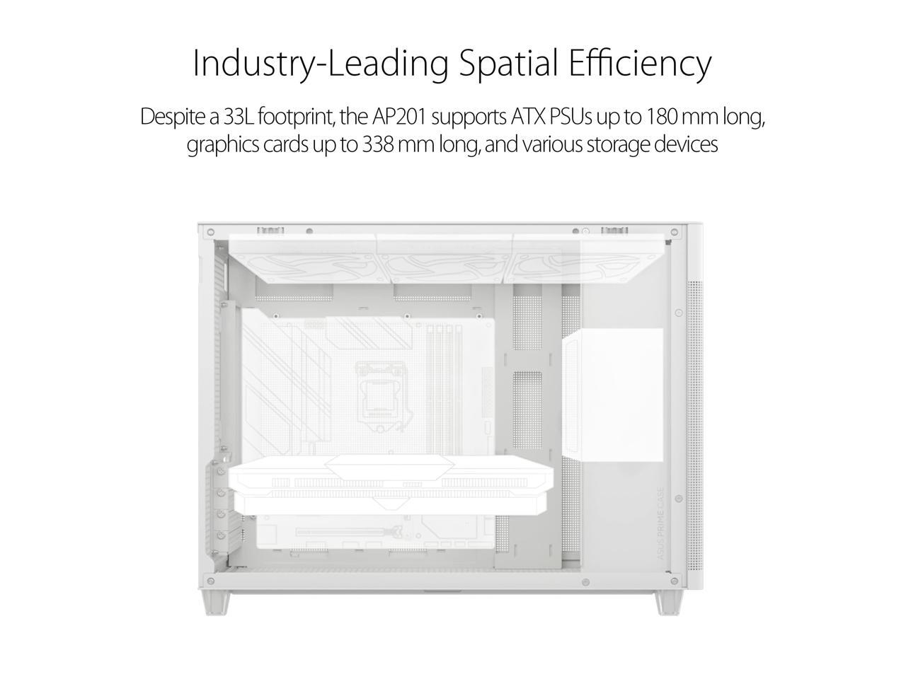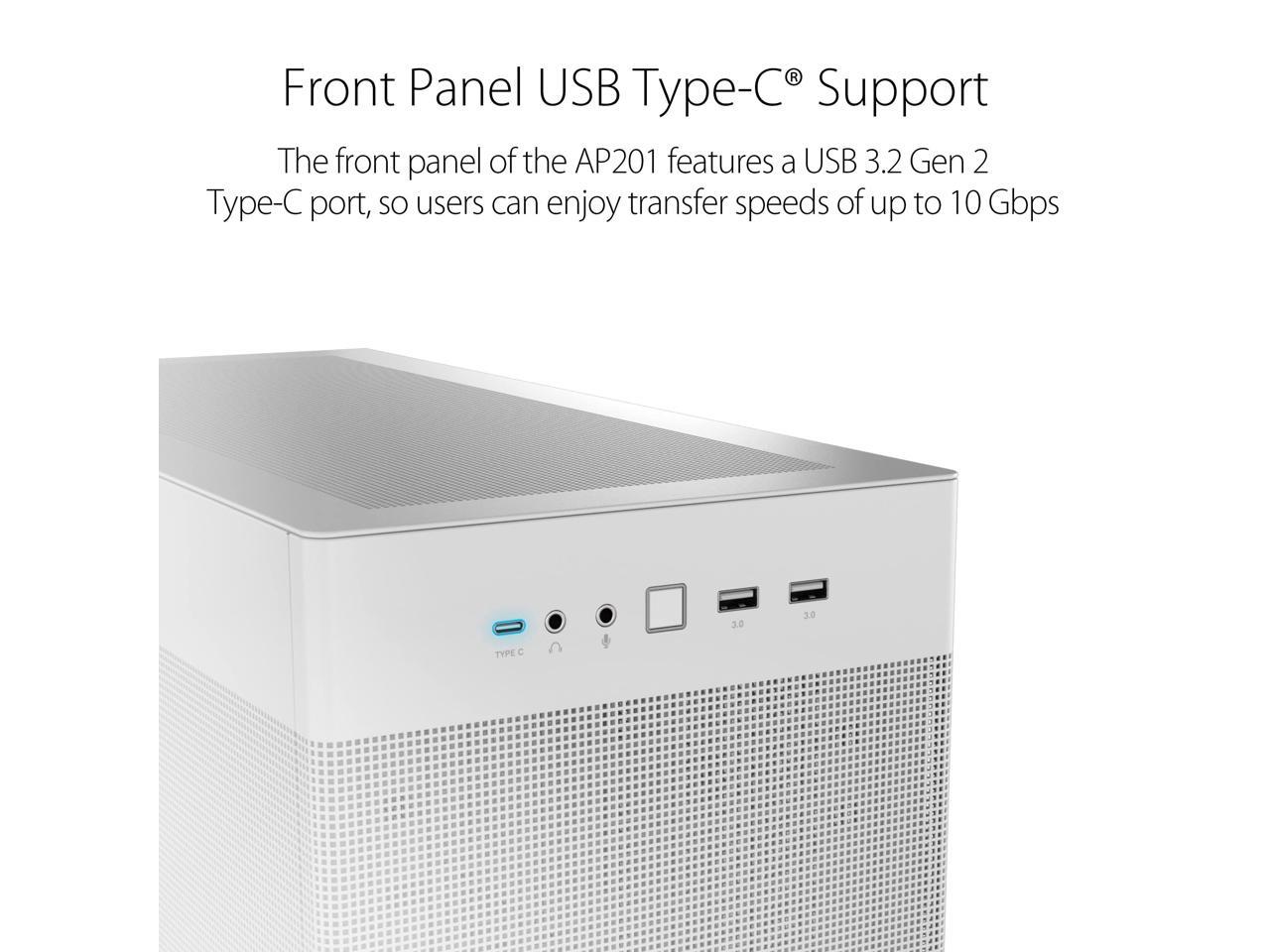 ASUS AP201 Type-C Airflow-focused Micro-ATX,Mini-ITX Computer Case, Support 360/280 Liquid Cooling White