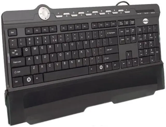 The Multifunction Multimedia Keyboard gives direct access to e-mail as well as your favorite web browser and multimedia controls. The 15 easy access hot keys are preprogrammed so there is no need for software. The keyboard has a built-in dust cover that folds down into a comfortable wrist rest.