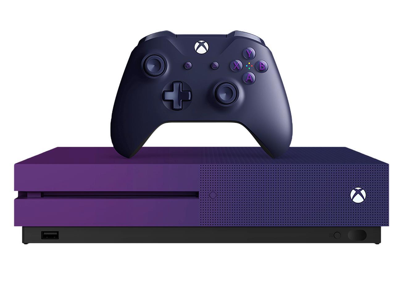 - Bundle includes: gradient purple 1TB Xbox One S console, purple Xbox Wireless Controller, download of the free Fortnite Battle Royale mode, a Legendary Outfit