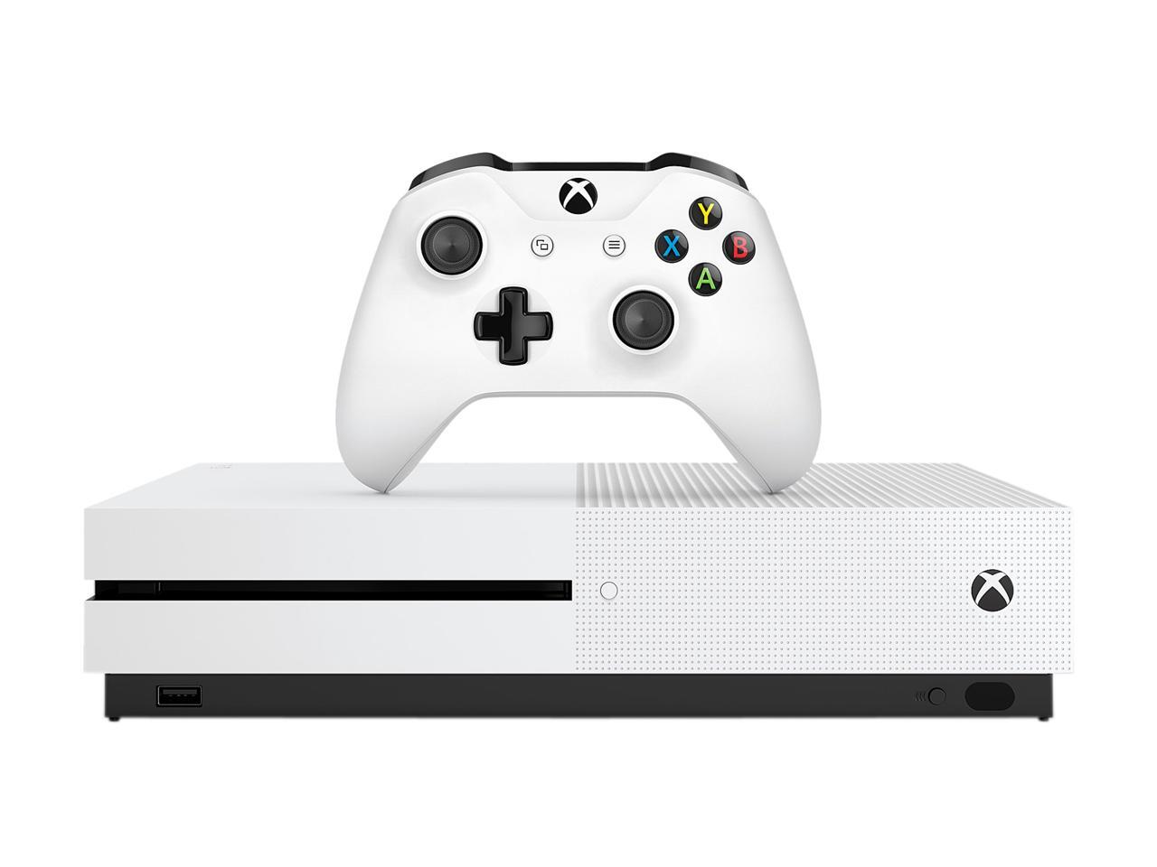 Bundle includes: Xbox One S 1TB Console, 1 Xbox Wireless Controller (with 3.5mm headset jack), HDMI cable (4K Capable), AC Power cable, 14-day Xbox Live Gold Trial