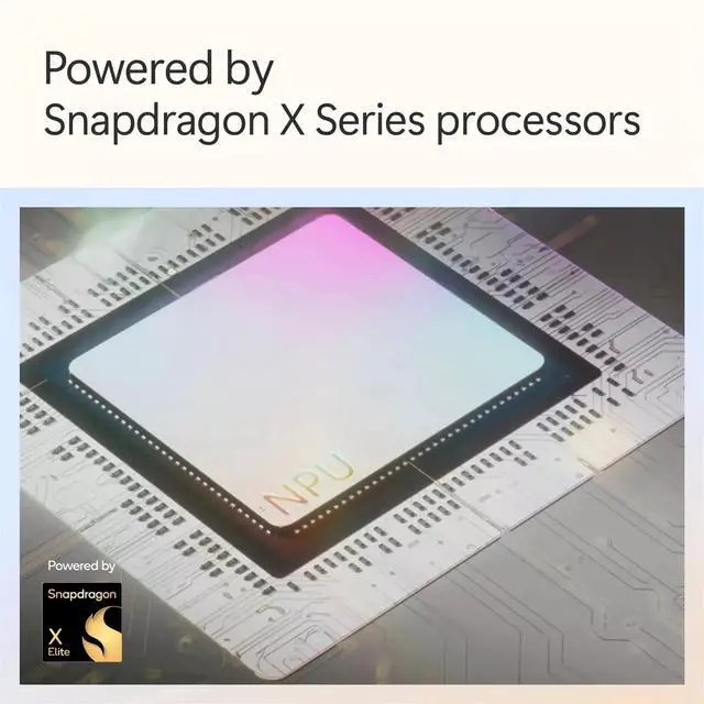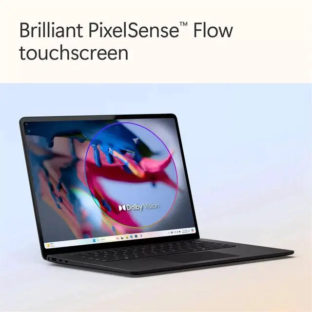 Cinema-Level Screen Time: Paired with adaptive color and Dolby Vision IQ, HDR improves brightness, colors, and contrast on your favorite movies from streaming platforms. Power and Portability Inside the Surface Laptop Copilot+ PC is a Snapdragon X Elite 12-Core processor, which is designed to power intensive AI workloads while maintaining high power efficiency. Its dedicated neural processor can handle up to 45 TOPS (trillions of operations per second). With this processing power, you can bring your video calls to the next level by pairing the Full HD Surface Studio Camera with Windows Studio Effects. Compatible with a variety of different applications, these AI-enhanced features help you look your best in different lighting conditions while the dual microphones separate your voice from background noise. AI settings may also be used to blur your background and ensure you're always at the center of attention, even when moving around, with automatic framing. Wi-Fi 7 ( 802.11 be) support provides smooth video streaming with compatible networks. Two 20 Gb/s USB4 ports are available alongside a 5 Gb/s USB-A 3.2 Gen 1 port and microSDXC reader for fast file transfers. Supporting a 2496 x 1664 resolution with a 120 Hz dynamic refresh rate and HDR support, the 15" PixelSense touchscreen delivers cinematic experiences featuring with deep shadows, bright highlights, and vibrant color.