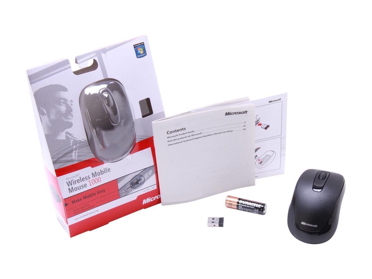 Microsoft Wireless Mobile Mouse 1000 2CF-00021 Black 3 Buttons 1 x Wheel USB RF Wireless Optical Mouse