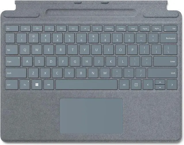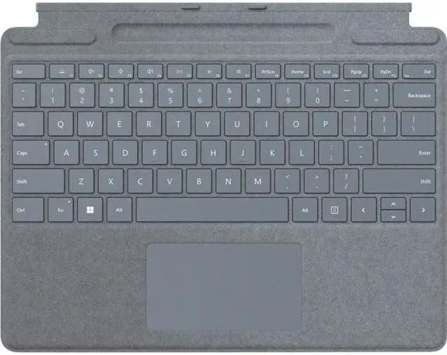 | Specifications | Keys: Activation: Moving (mechanical) keys Layout: English, full row of function keys (F1 - F12) Dedicated buttons for Windows shortcuts, media controls, screen brightness Right click button Pen integration: Surface Slim Pen 2 storage and charging Interface: Magnetic Sensors: Accelerometer Material: Alcantara |