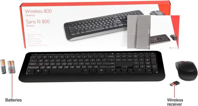 Microsoft Keyboard/Mouse Desktop 800 Combo. Brand NewIncludes One Year Warranty. . The Microsoft Keyboard/Mouse Desktop Combo is a wireless keyboard and reliable mouse bundle which offers advanced functionality and ease of operation at your fingertips. The strong and secured wireless signal allows you to choose where you want to work.. . Keyboard/Mouse Desktop Combo
