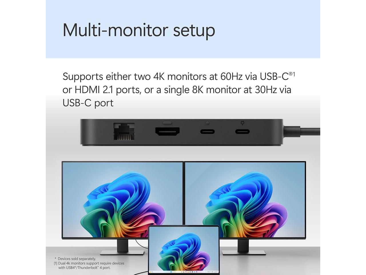 Microsoft Surface USB4 Docking Station – Gigabit Ethernet - USB C to 2xUSB-C - 1xUSB-A/HDMI - 65W Power Delivery - Black EP2-19862