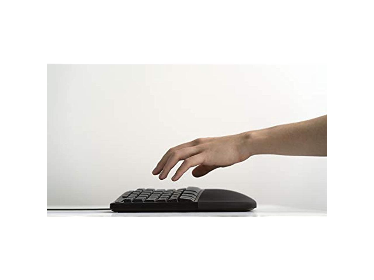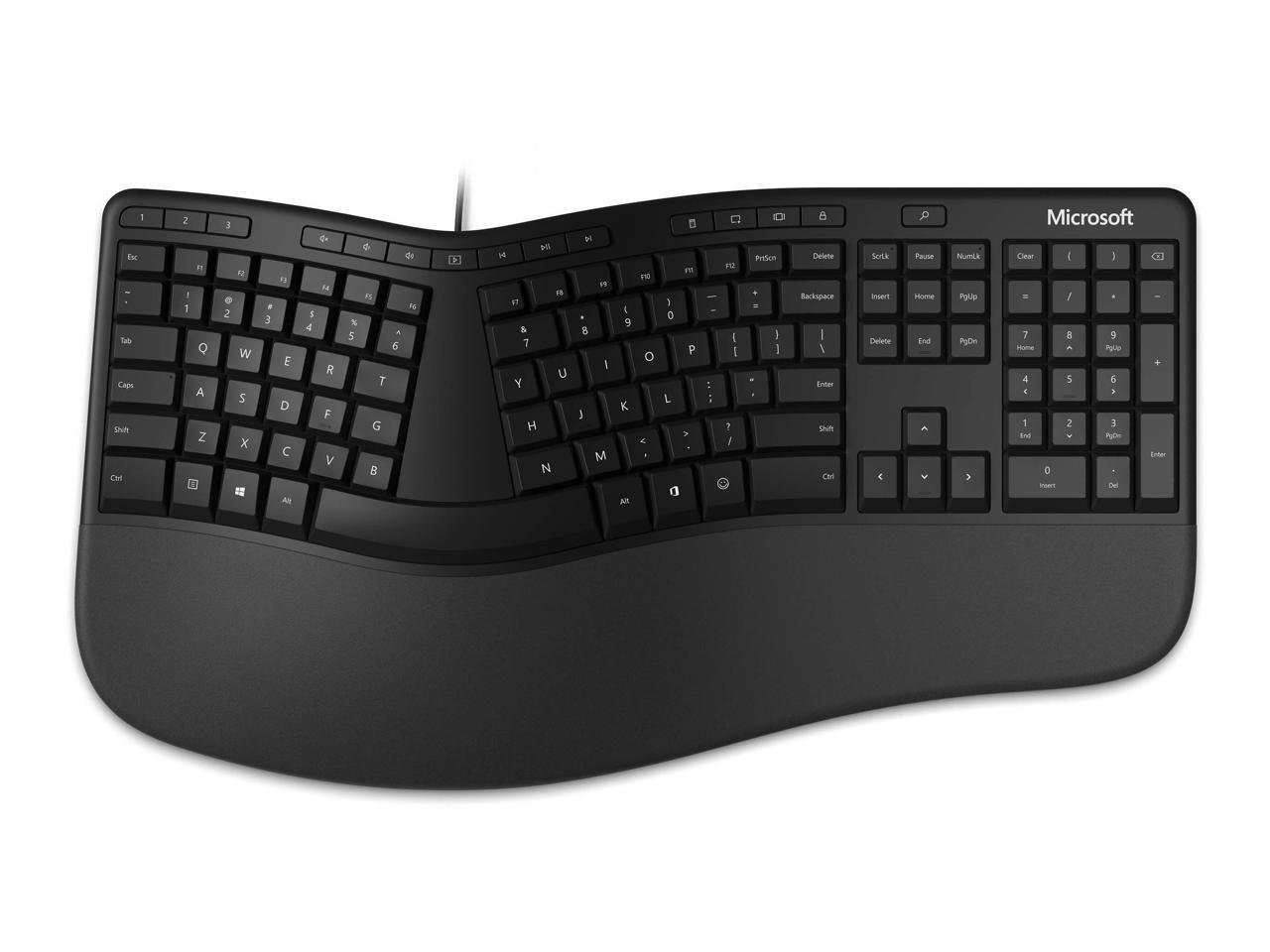 Microsoft Ergonomic Keyboard - Black. Wired, Comfortable, Ergonomic Keyboard with Cushioned Wrist and Palm Support. Split Keyboard. Dedicated Office Key.