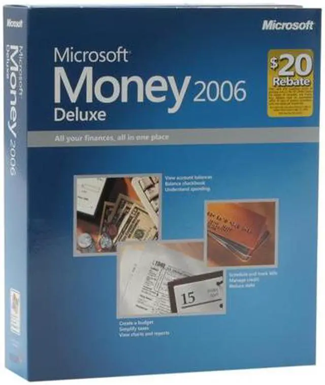 | Feature | Microsoft Money 2006 Deluxe helps simplify your finances as you stay on top of credit and debt. You control all of your accounts in one place with a single password. Get everything that Money 2006 Standard offers, plus many additional helpful features. Work toward eliminating high-interest debt. Money 2006 Deluxe gives you access to credit scores and percentile rankings and helps assess credit risk levels. As you reduce debt, work toward long-term goals such as buying a house, budgeting for college, or saving for a vacation. Get organized for tax time with tips from tax experts, Tax Estimator and Deduction Finder tools, and exporting of your data to tax-preparation software. |
