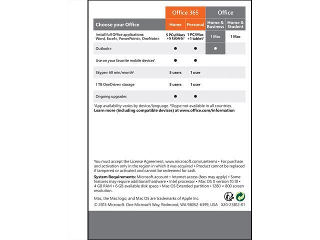 Office 2016 for Mac versions of Word, Excel, PowerPoint, OneNote and Outlook