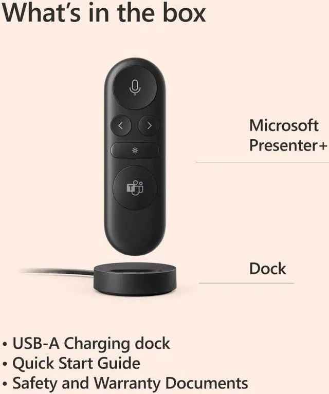 Microsoft Presenter+ USB-A charging dock Quick Start Guide Safety and warranty documents