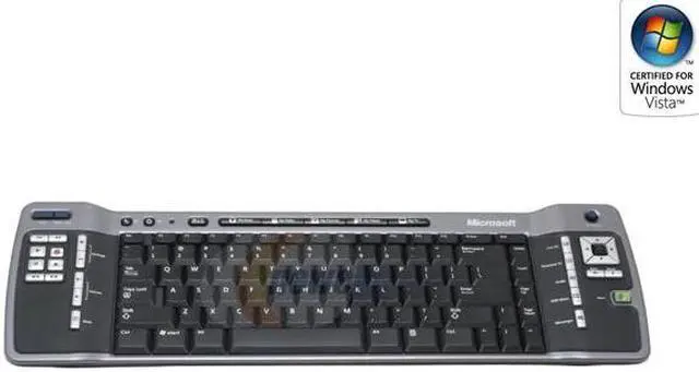Microsoft introduces a keyboard to complement the media center PC's that will make your universal remote stutter with envy. Simply named Remote, this keyboard lives up to its name with wireless and connection to the integrated IR that is often included with media desktops in today's market. It is slim and fit for easy storage, and has a lock function to prevent accidental typing by the cats when you're away.
