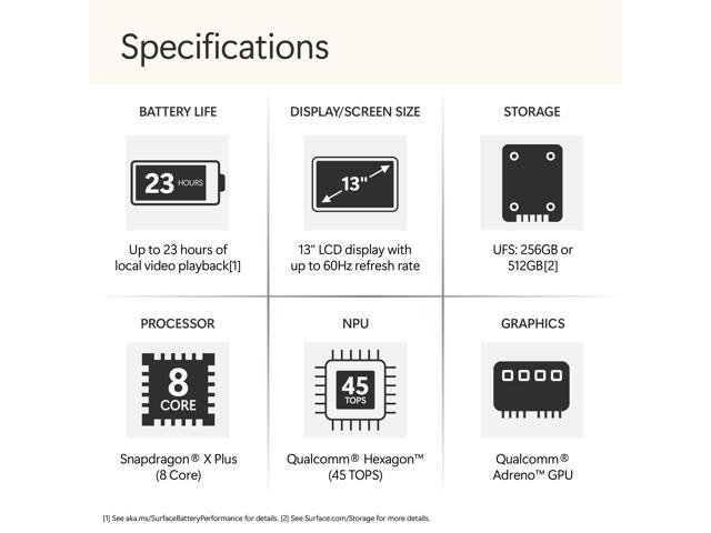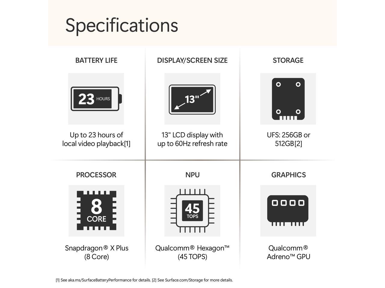 Microsoft 13" Surface Laptop Copilot+ PC, Snapdragon X Plus 8-Core, 16GB RAM, 512GB UFS, Platinum, Latest Model