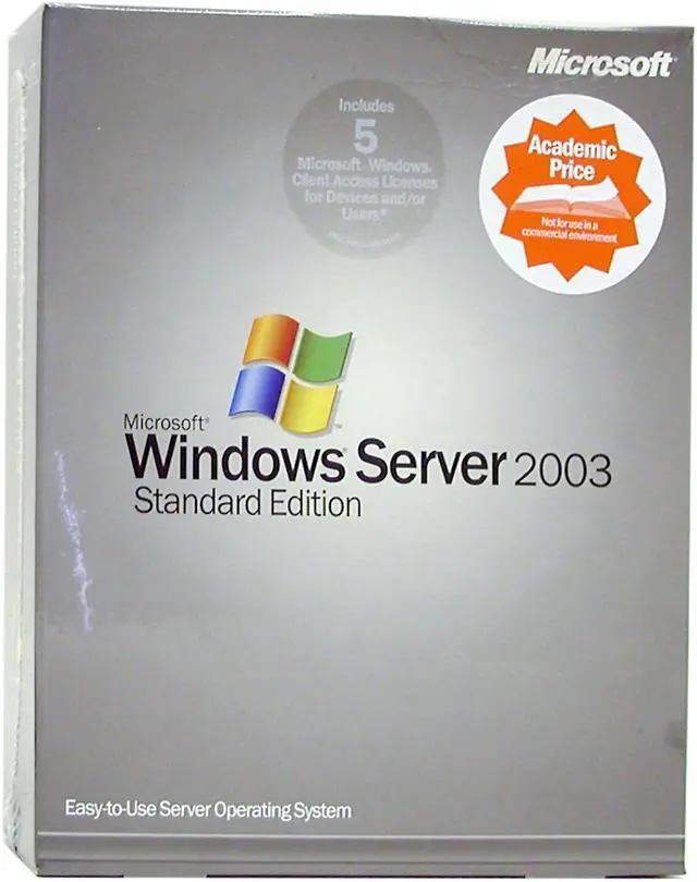 | Feature | Takes the best of Windows 2000 Server technology and makes it easier to deploy, manage, and use. Includes all the functionality customers need today from a Windows server operating system to do more with less, such as security, reliability, availability, and scalability. In addition, Microsoft has improved and extended the Windows server operating systems to incorporate the benefits of Microsoft.NET for connecting information, people, systems, and devices. (Academic price for schools/students only!) |