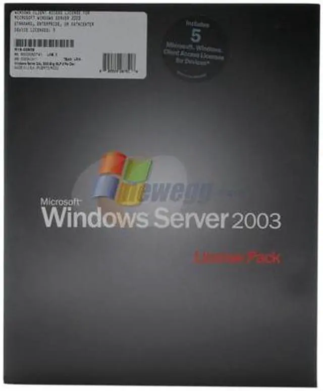 | Feature | The Microsoft Windows Server 2003 licensing model consists of a Server operating system license and incremental Client Access Licenses (CALs) and is designed to allow for complete scalability of your cost in relation to your usage. In addition, Microsoft offers several flexible, cost-effective options for licensing. Note that there are a few CAL types available to suit your individual needs. This page provides guidance on the Windows Server 2003 pricing and points you to our various licensing programs so you can find the most cost-effective solution for your organization. Includes: 5 CALs User or Device This pack comes without media. |