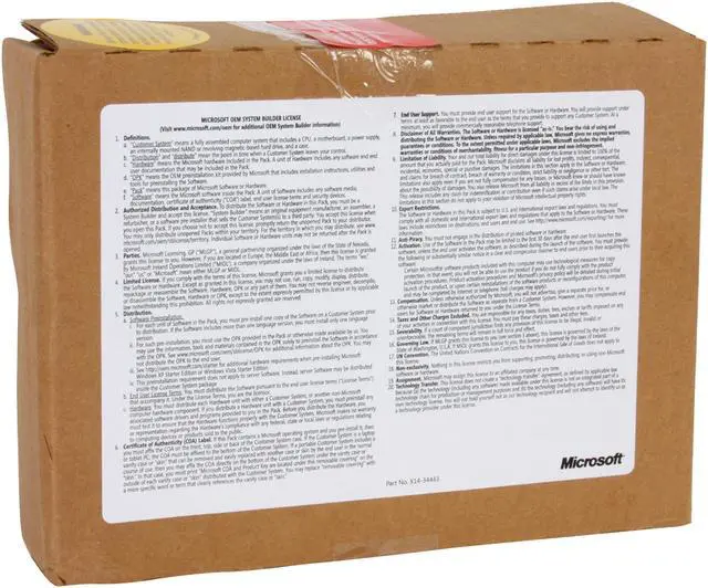 | Disclaimer | Use of this OEM System Builder Channel software is subject to the terms of the Microsoft OEM System Builder License. This software is intended for pre-installation on a new personal computer for resale. This OEM System Builder Channel software requires the assembler to provide end user support for the Windows software and cannot be transferred to another computer once it is installed. To acquire Windows software with support provided by Microsoft please see our full package "Retail" product offerings. |