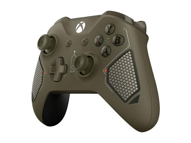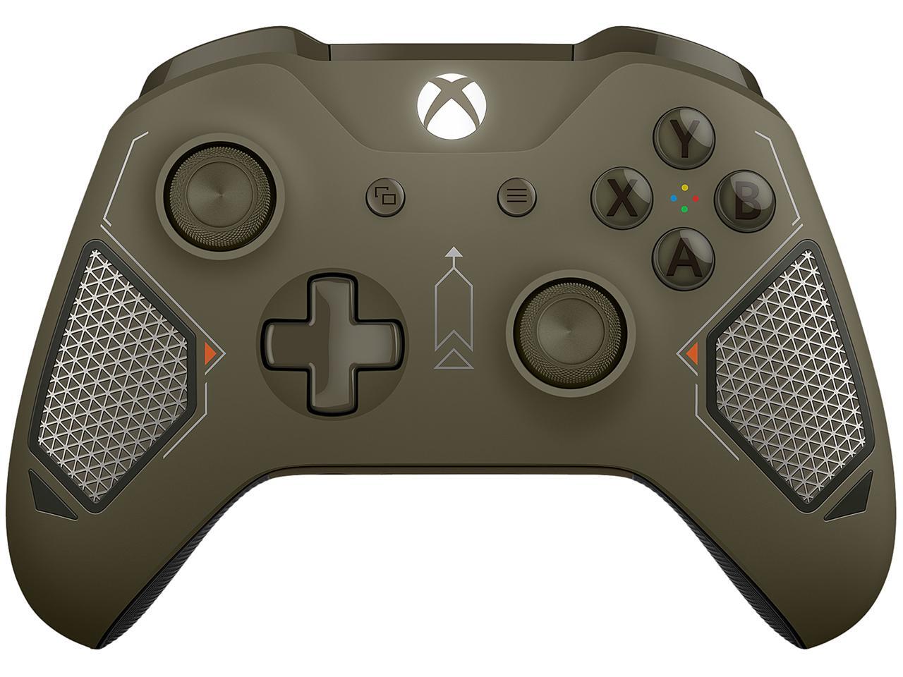 Equip yourself with the Xbox Wireless Controller – Combat Tech Special Edition, featuring a sleek, dark green military design with black, silver, and orange accents