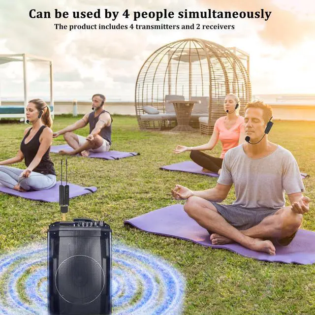 Wireless Microphone System for 4 People, 2.4G Wireless Headset Mics and Handheld Mics 2 in 1, Ideal for Speakers, Voice Amplifier, PA System, Teacher, Tour Guides, Fitness Instructor