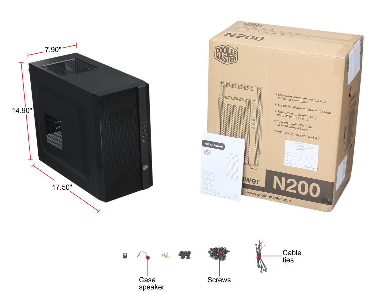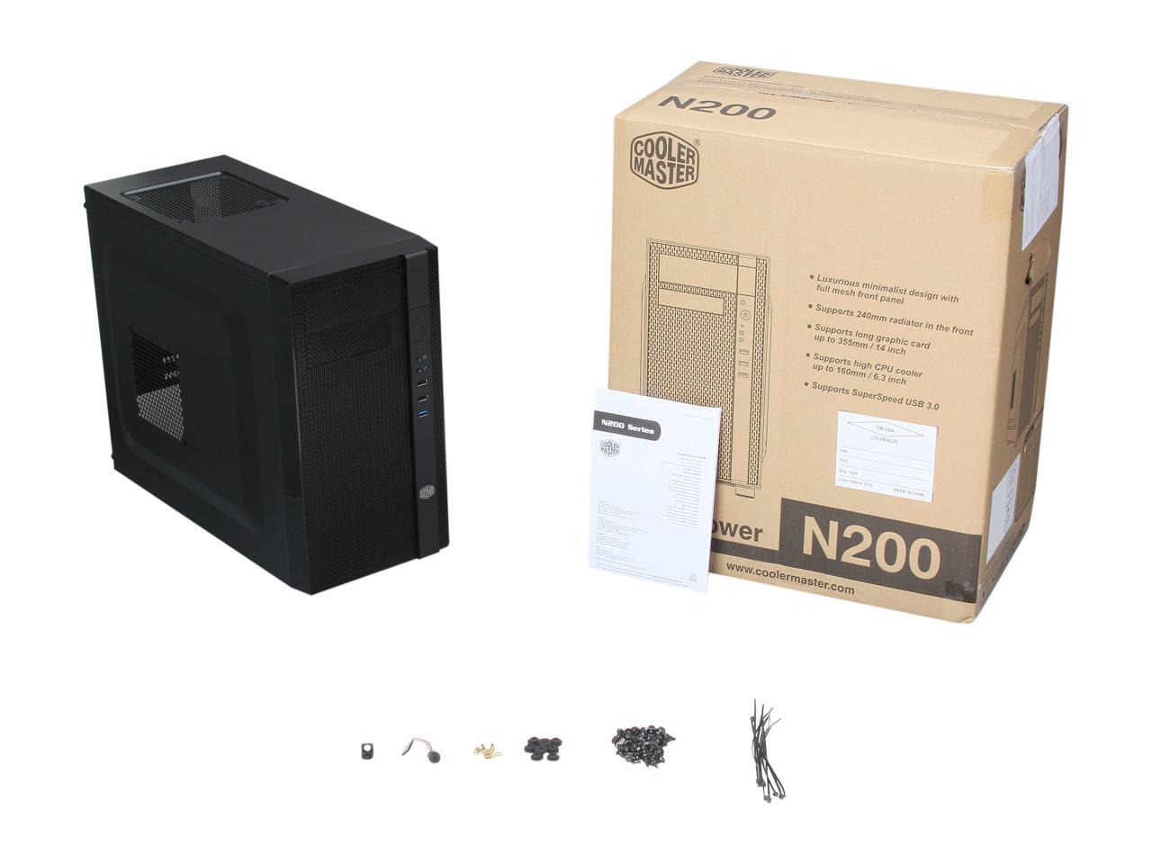 The N200 is a member of Cooler Master's N Series computer cases. All members of the N Series feature a mesh front panel that provides modern styling and optimized ventilation. Water cooling is fully embraced as N200 can support a 240mm radiator in the front for extreme cooling performance. A removable dust filter located under the chassis makes system maintenance simple and convenient.