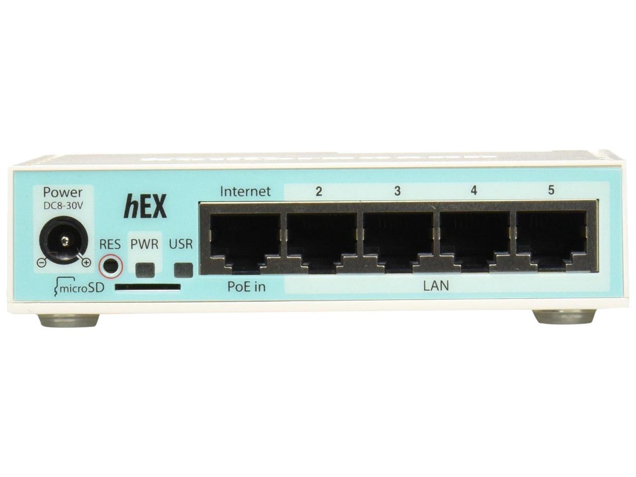 - hEX also known as RB750Gr3 is a five port Gigabit Ethernet router for locations where wireless connectivity is not required