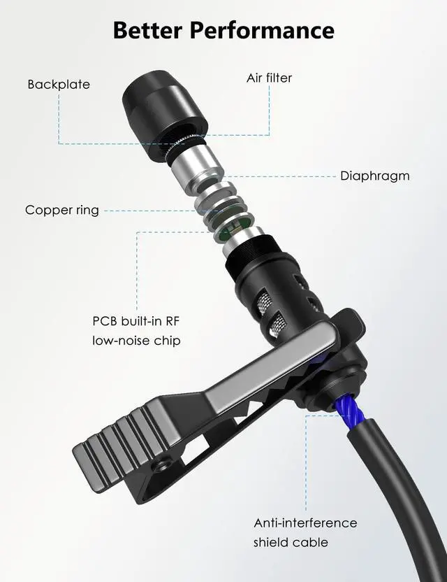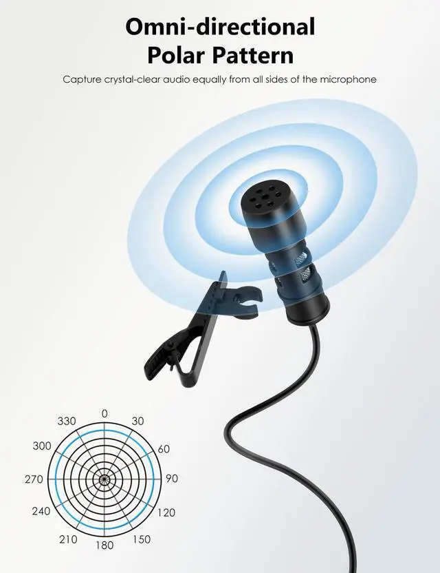 Capture crystal-clear audio equally from all sides of the microphone, so you don't need to worry about what direction the mic is pointing when clipped to your shirt.