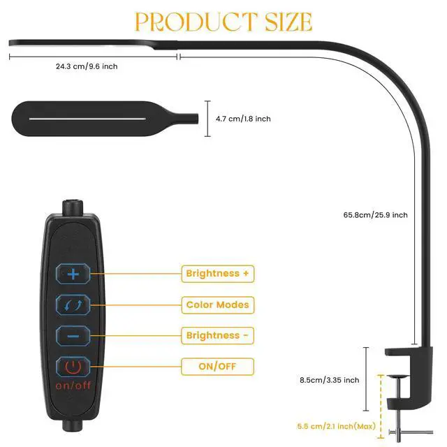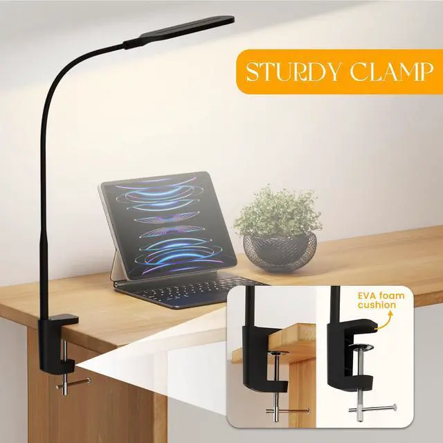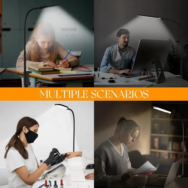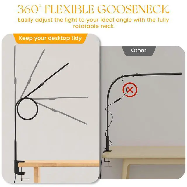 Long Flexible GooseneckThis desk lamp features a 25.9-inch length of 360° long flexible gooseneck, you can easily extend the light over your workspace and point it at any angle, ensuring no spot is left in the dark, perfect for large desks or dual monitors.