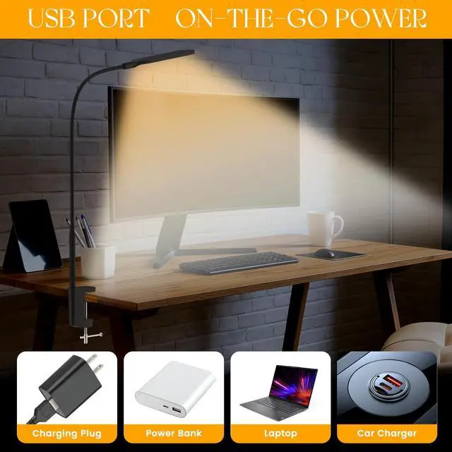 Convenient USB PowerPowered by a DC 5V/2A USB connection, this Clamp Light is highly versatile. It works with almost any USB power source, such as wall adapters, laptops, power banks, or car chargers. You can set up your ideal lighting in your home office, workshop, or even on the go.