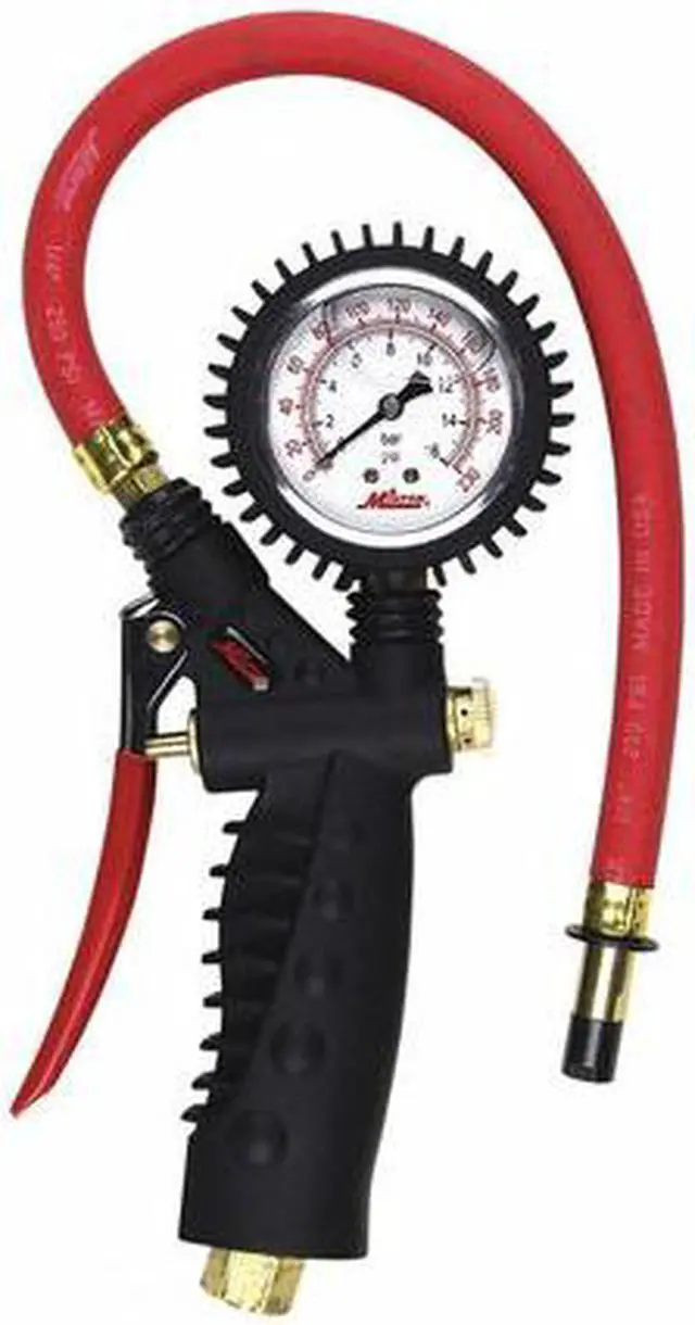 California Proposition 65: This product contains a chemical known to the State of California to cause birth defects or other reproductive harm. Inflator Gauge, Analog, Straight Chuck
