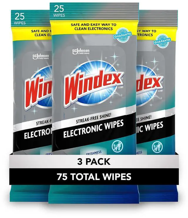 • What You'll Get: Three packs of 25 Windex Electronic Pre-Moistened Cleaning Wipes