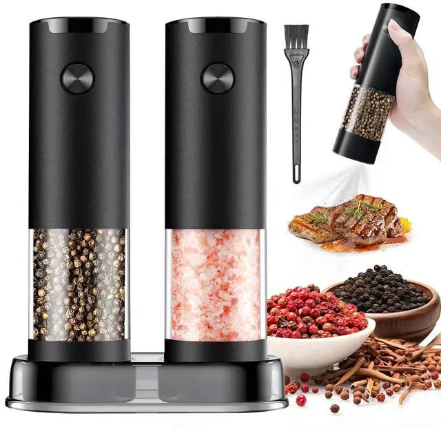 Automatic, Pepper/Salt Grinder, false, Stainless Steel, Set With Base Battery/Black, Hand Wash