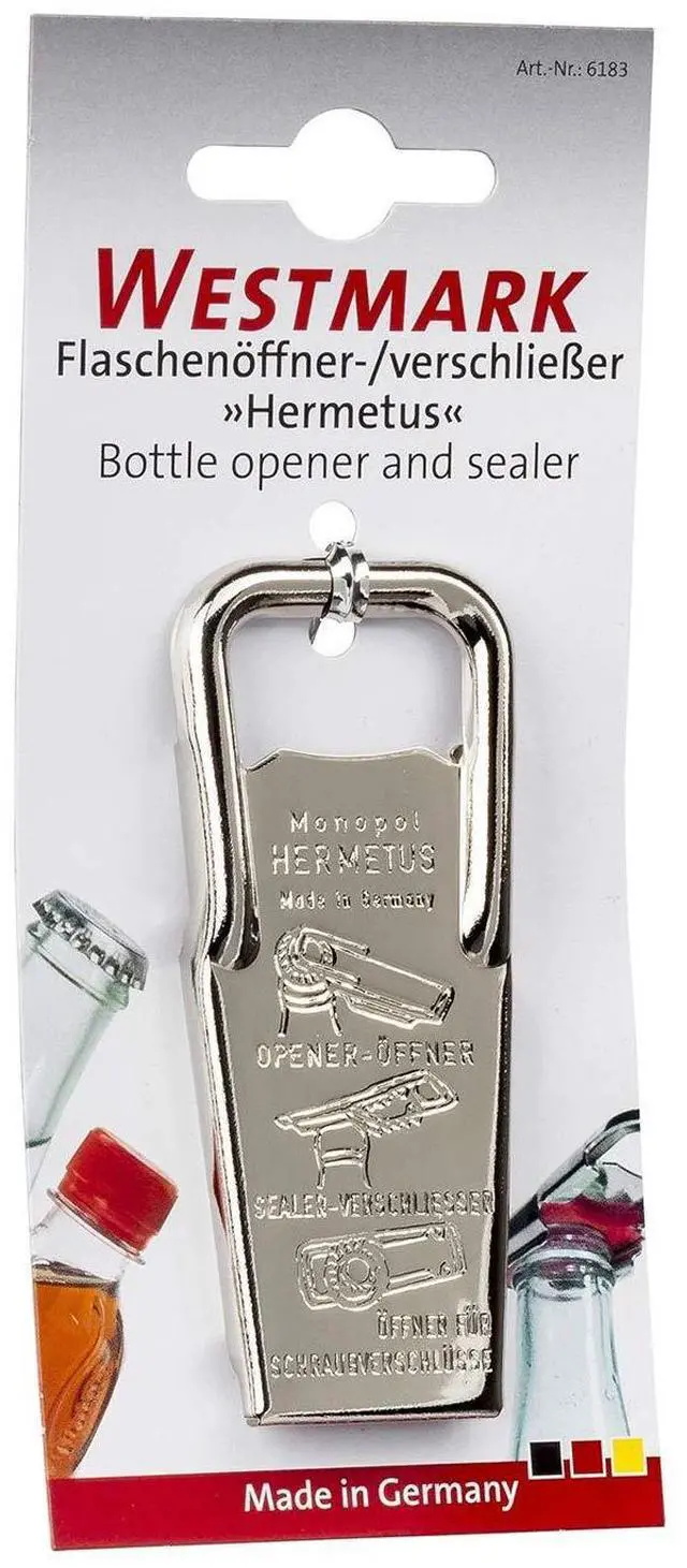 Features: - Steel base - Air-tight rubber surface - Bottle opener - Plastic bottle opener - Glass bottle sealer - Ergonomic handle About the Brand: HIGHEST QUALITY WITH TREND AND TRADITION! Westmark of Germany is well known for its quality craftsmanship of kitchen gadgets. Westmark has been making reliable kitchen products for over 50 years. As a specialized and reliable partner, Westmark offers a wide range of practical and uncomplicated kitchen products designed to make cooking and life in the kitchen easier. For traditional reasons, Westmark produces most of their products in Elspe, Germany. If you are not happy with our product, simply return the item to Amazon for a full refund, but we are confident that you will LOVE our product!