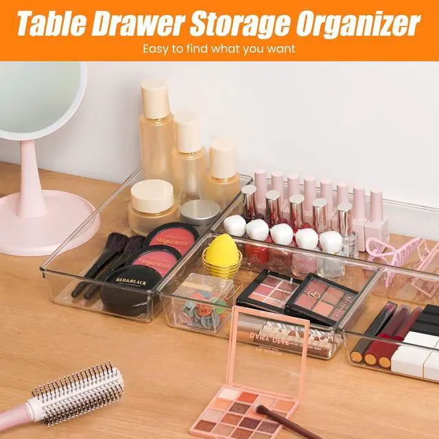 Our acrylic organizers are Great for kitchen drawers, dresser drawers, desk drawers, vanity drawers, pantry drawers. Perfect for kitchen, bedrooms, bathrooms and offices. These desk drawer organizer are strong and will not crack, the included non-slip pads help these clear drawer organizers from sliding around when you open the drawer.