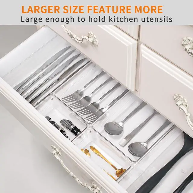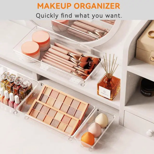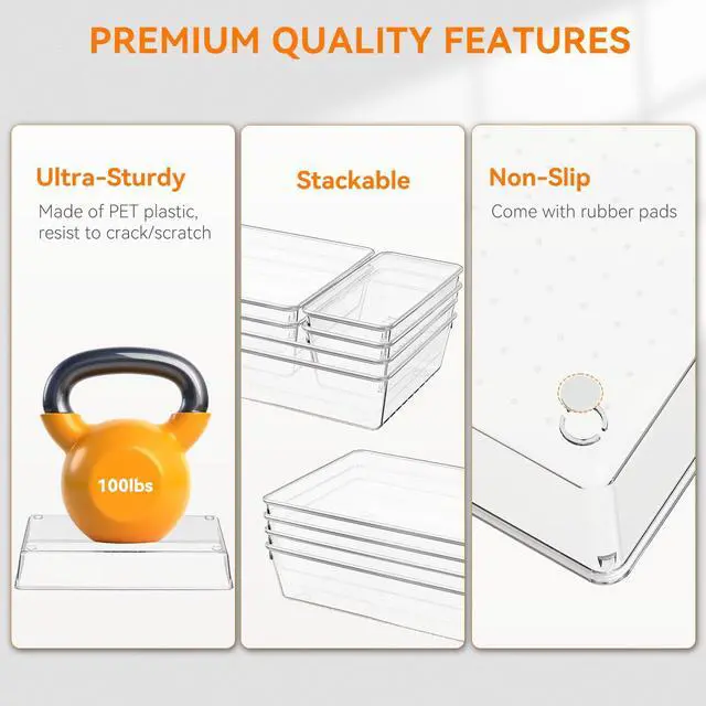 - Non-Slip - Each clear drawer organizers comes with a bunch of rubber pads to keep in place these bins for organization even when you suddenly open the drawer.