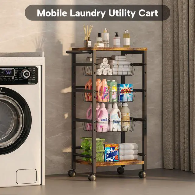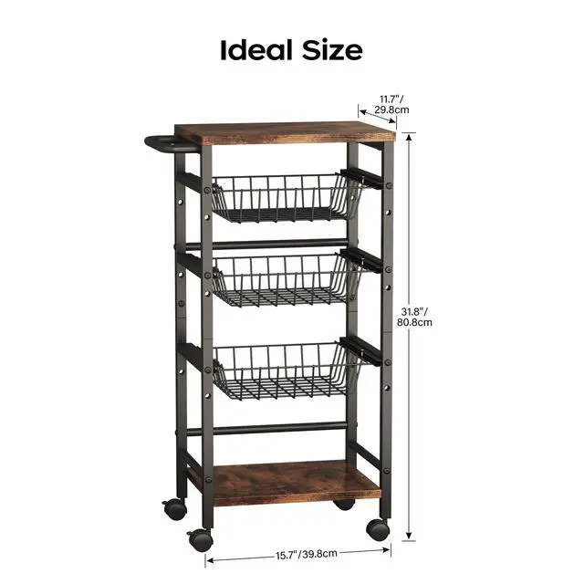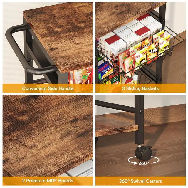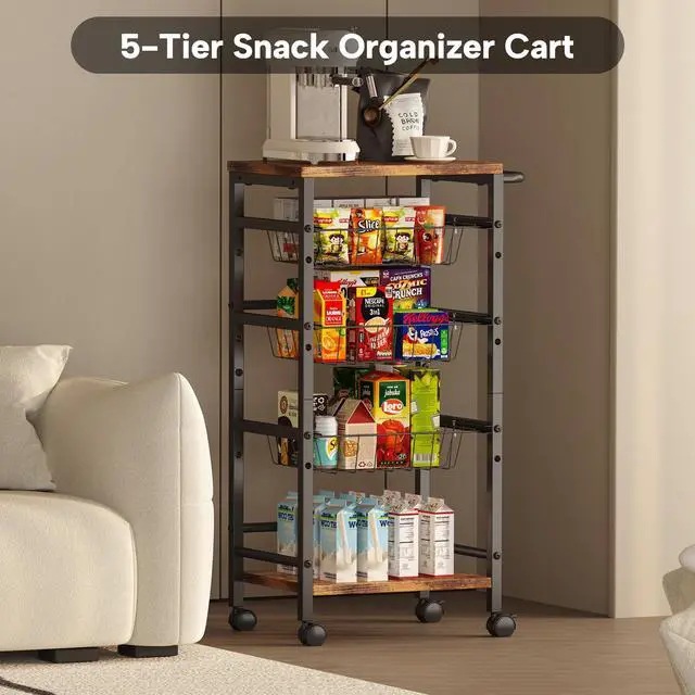 5-Tier Snack Organizer Cart with 3 Height Adjustable Pull-Out Baskets and 2 Storage Shelves, Utility Kitchen Organizer and Storage Cart with Convenient Handle for Fruit Potato Onion Vegetable Snack pantry shelf cart for snacks kitchen fruit organizer