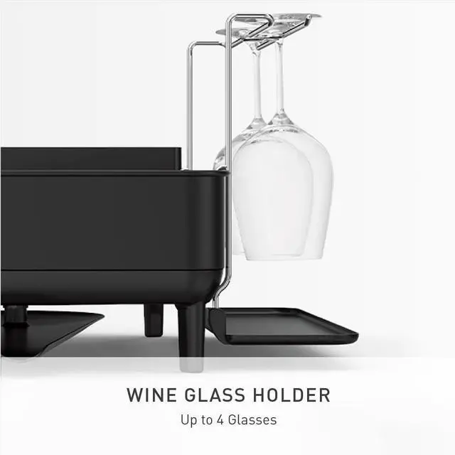 Got a lot of dishes and extra-large wine glasses? Our steel frame dishrack has enough capacity to handle it — and with silicone-capped plate holders, your dishes are always safe and secure — no scratching or chipping.