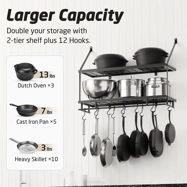 | Recommended Uses For Product | Pot and Pan Storage, Kitchen Organization, Utensil Hanging, Cookware Display |
