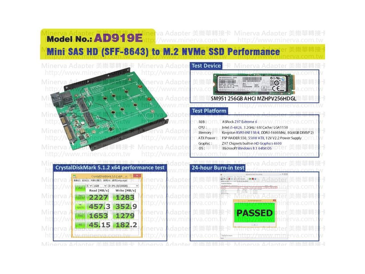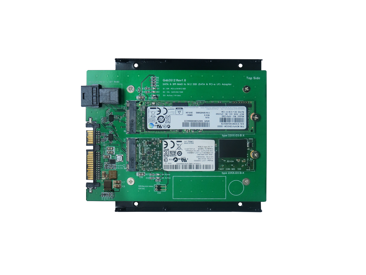 Mini SAS HD (SFF-8643) to M.2 NVMe SSD & SATA III to M.2 (SATA Interface) SSD Adapter with 3.5" Frame Bracket