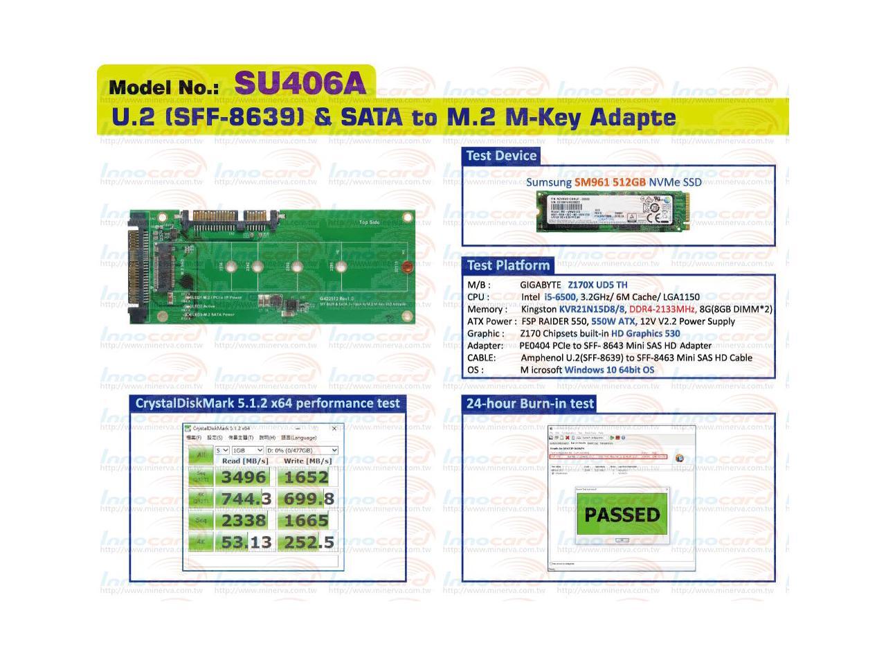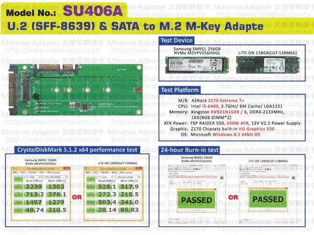 U.2 (SFF-8639) to M.2 NVMe SSD & SATA 7+15pin to M.2 (SATA I/F) SSD Adapter Support 2230 / 2242 /2260 /2280 /22110