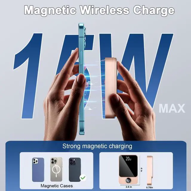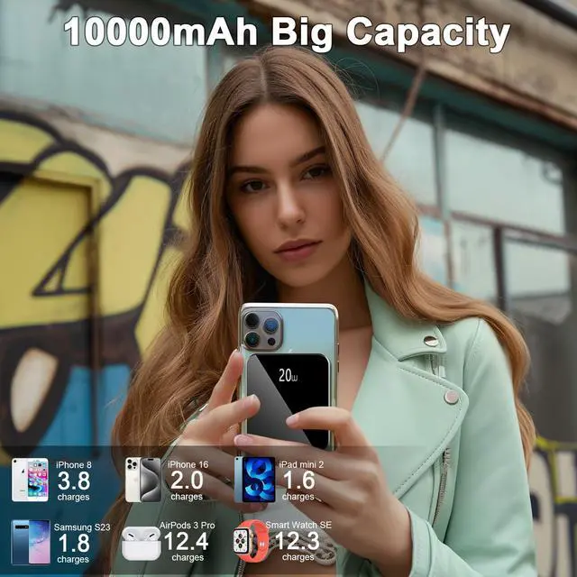 Magnetic Portable Charger, Power Bank 10000mAh with PD 20w Fast Charging, USB C Out&in Battery Pack, Compatible with Mag-Safe for iPhone 17/16/15/14/13 Pro/Pro Max Series, Samsung, Android, and More