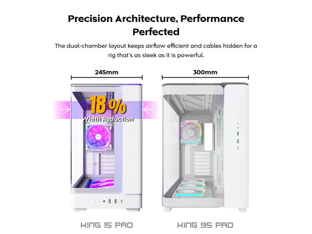 Compact Dual-Chamber Layout: Separates the main hardware zone and cable management area for clean builds and unobstructed airflow.