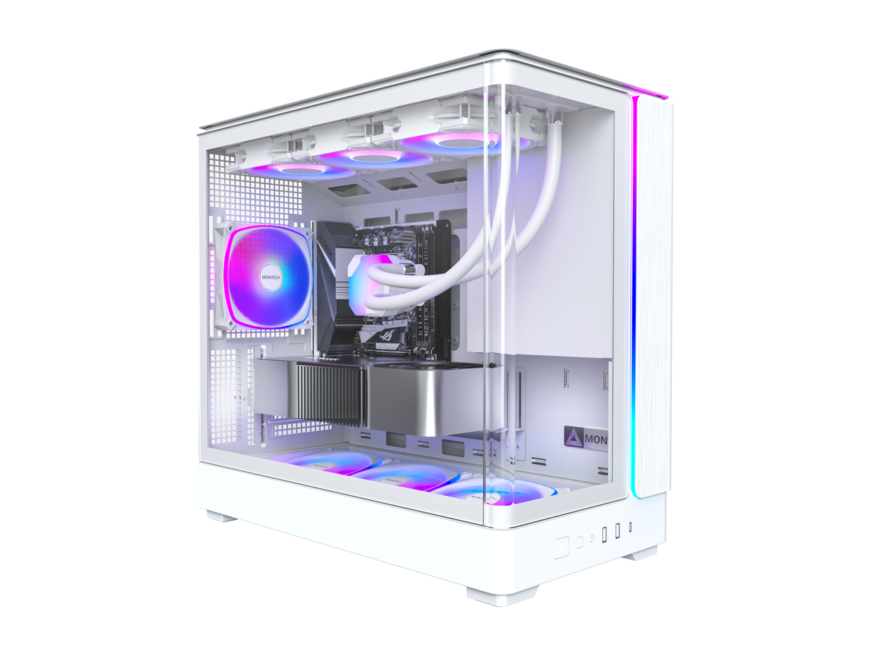 MONTECH KING 15 PRO Micro-ATX PC Case, Curved Panoramic Glass, Chimney Airflow, 360mm Radiator Support, Compact Build for High-Performance Systems, 4 ARGB PWM Fan Pre-Installed with Fan Hub, White