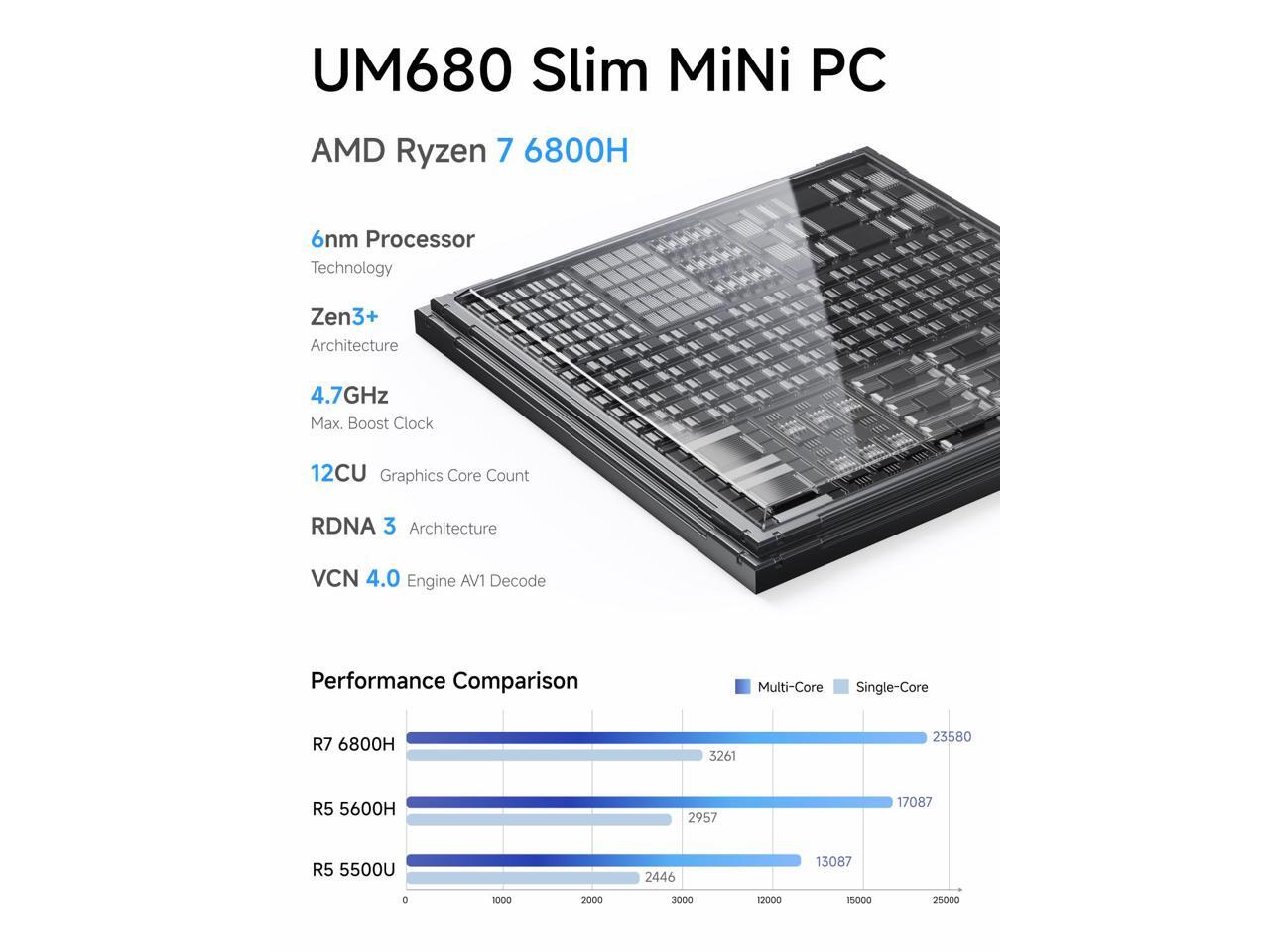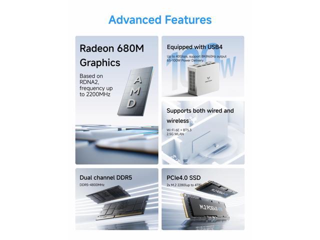 - Exceptional Processing Power: This Mini PC is powered by the AMD Ryzen 7 6800H processor, featuring 6 cores and 12 threads, with a maximum boost clock of up to 4.7GHz.