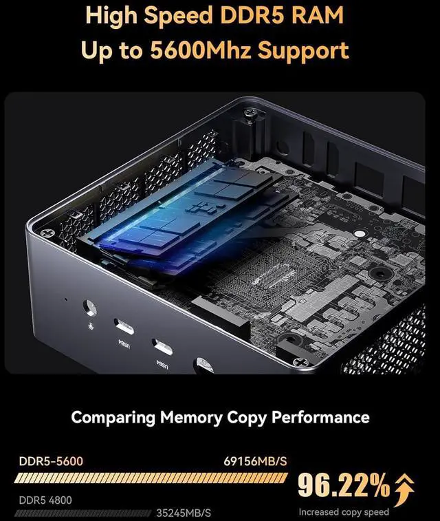 Memory: DDR5 Dual channel (SODIMM Slots×2, Up to 5600MHz, Max 64GB)